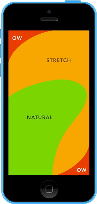 If I'm a typical, bored user waiting in line for delicious burritos or coffee, I want to maximize my swipes / flicks and see as many stories as I can, as quickly as I can. To accomplish this, I start my thumb from the right of the phone and flick quickly to the left. This means that I have to hook my thumb and jump into the red "Ow" Zone.