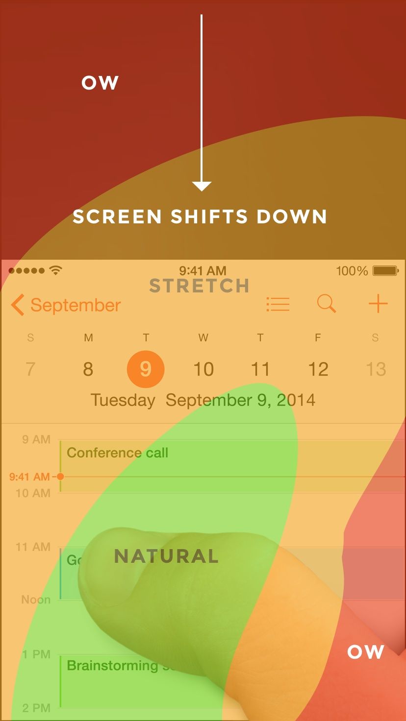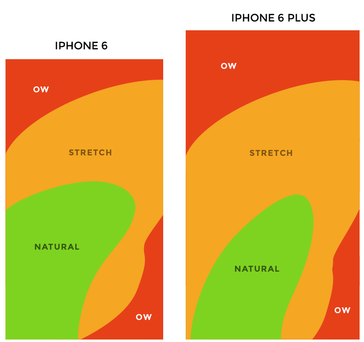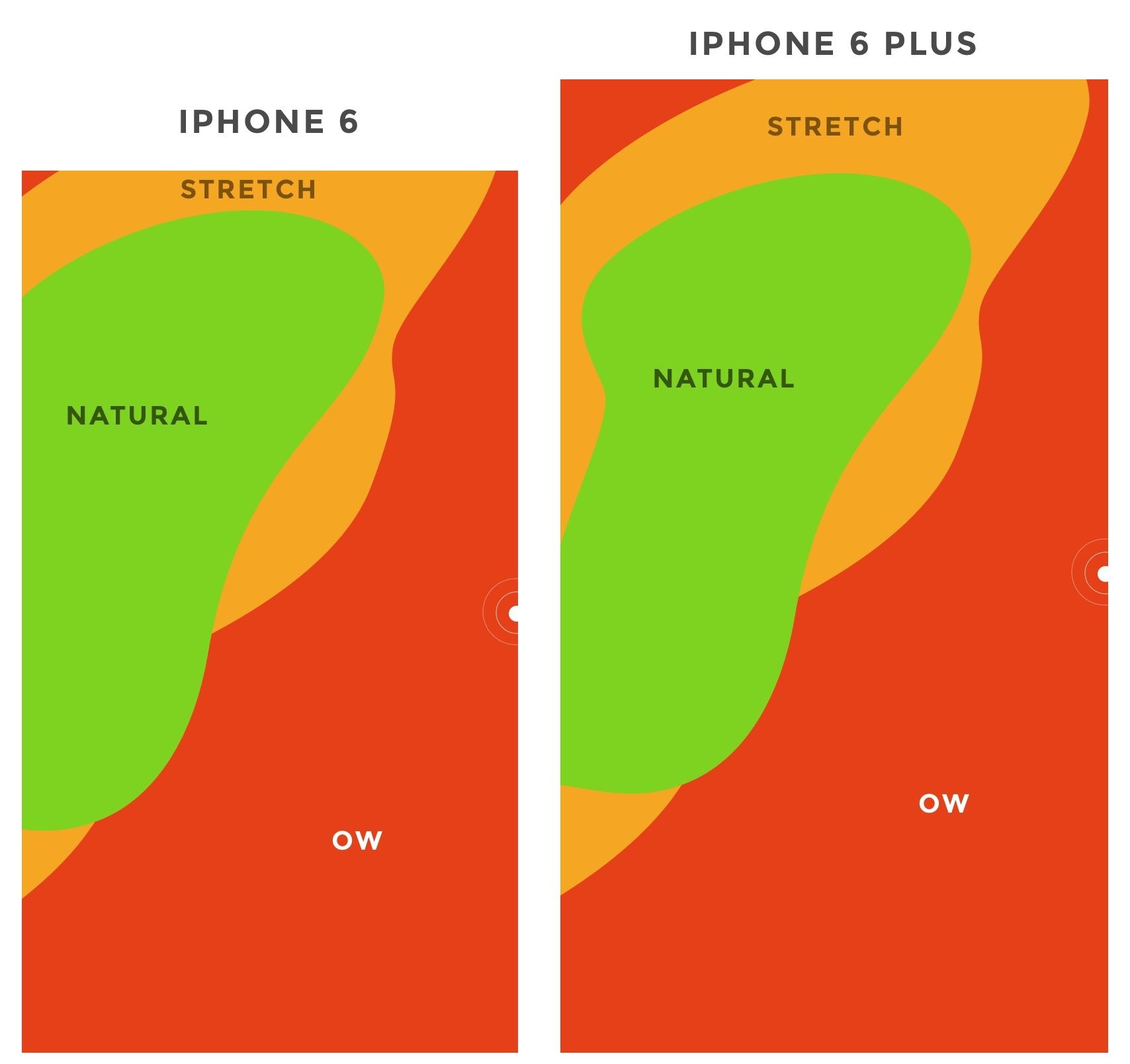 Furthermore, you’ll notice how the shape of the “Natural” zone changes for the iPhone 6 Plus. That’s because it requires a different type of grip due to its size, using your pinkie finger as a stabilizer. It surprised me how different the experience was.