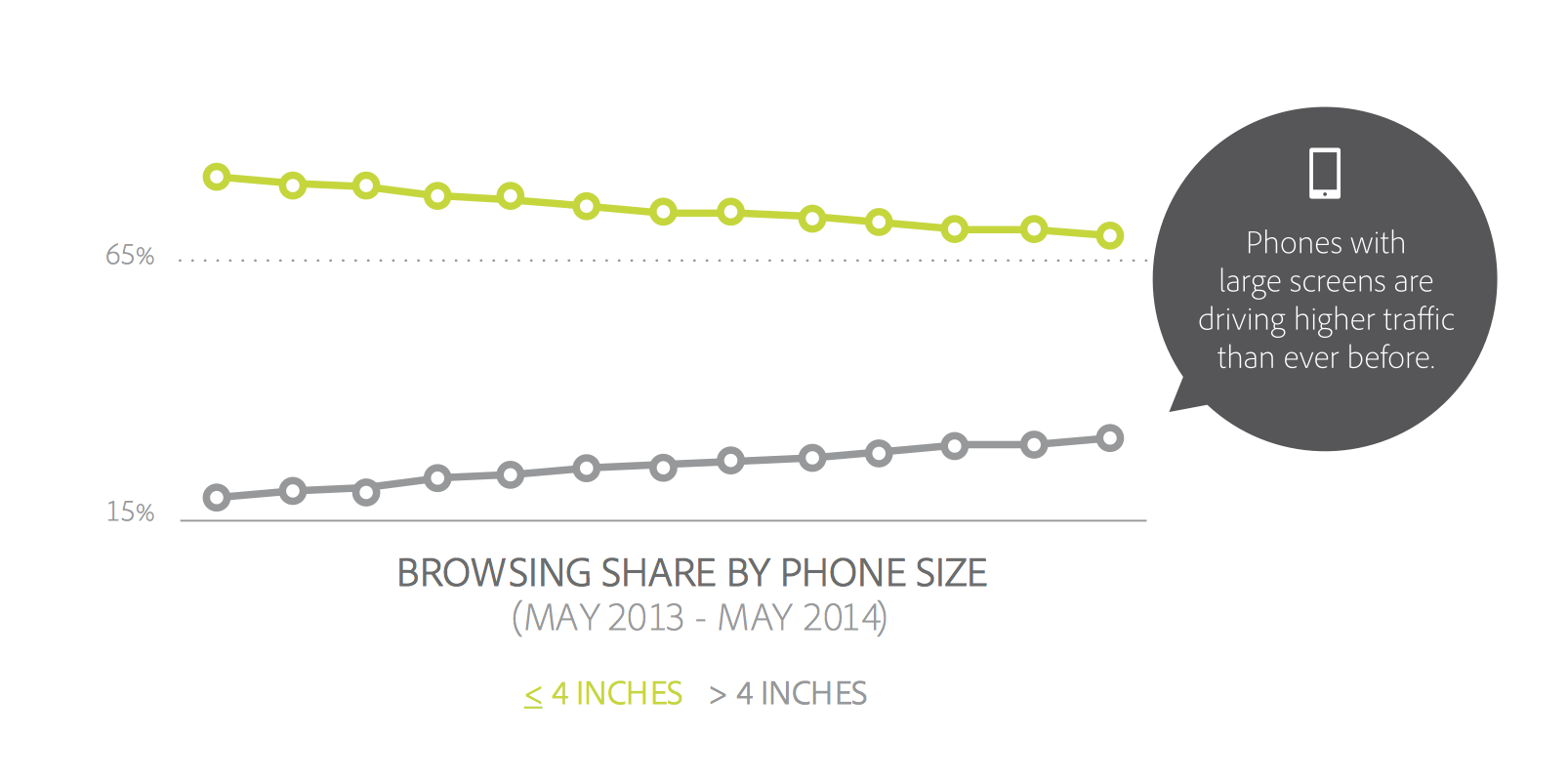 The decline is already in motion. Adobe’s 2014 Mobile Benchmark Report claims that mobile browsing among phones with 4” screens or smaller is down by 11%.