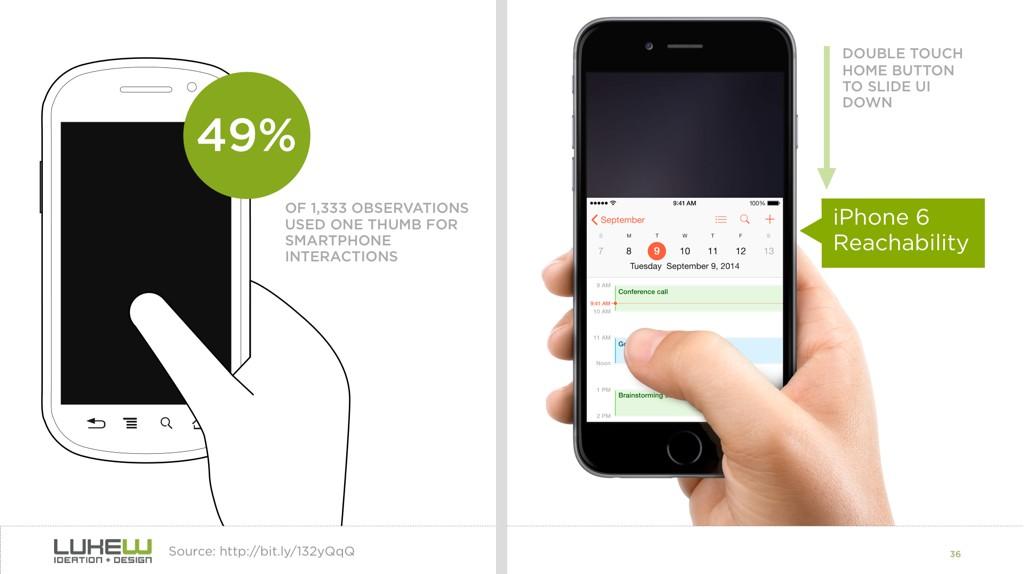 "Reachability on the 6 Plus moves things further down the display, percentage-wise, than it does on the 6 — it’s all about moving the top of the display to a typical thumb’s length from the bottom of the device."