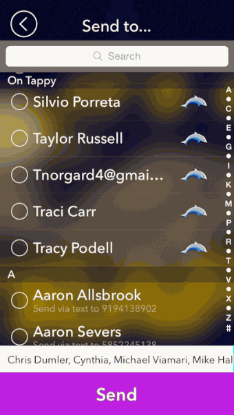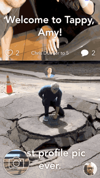 Sending a photo should be satisfying. When your photo completes its upload, Tappy the Dolphin makes a cameo and the metadata bounces into place.